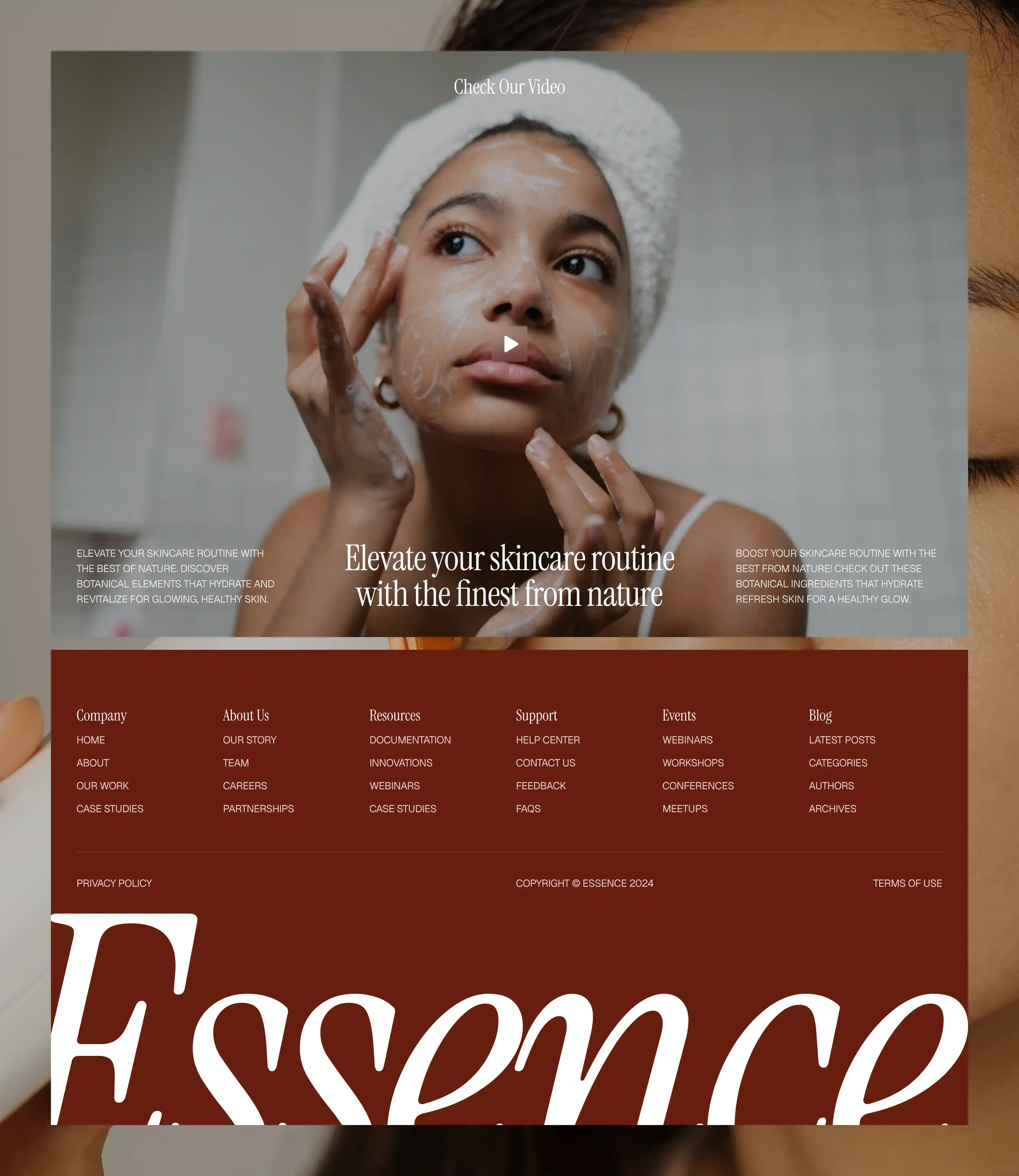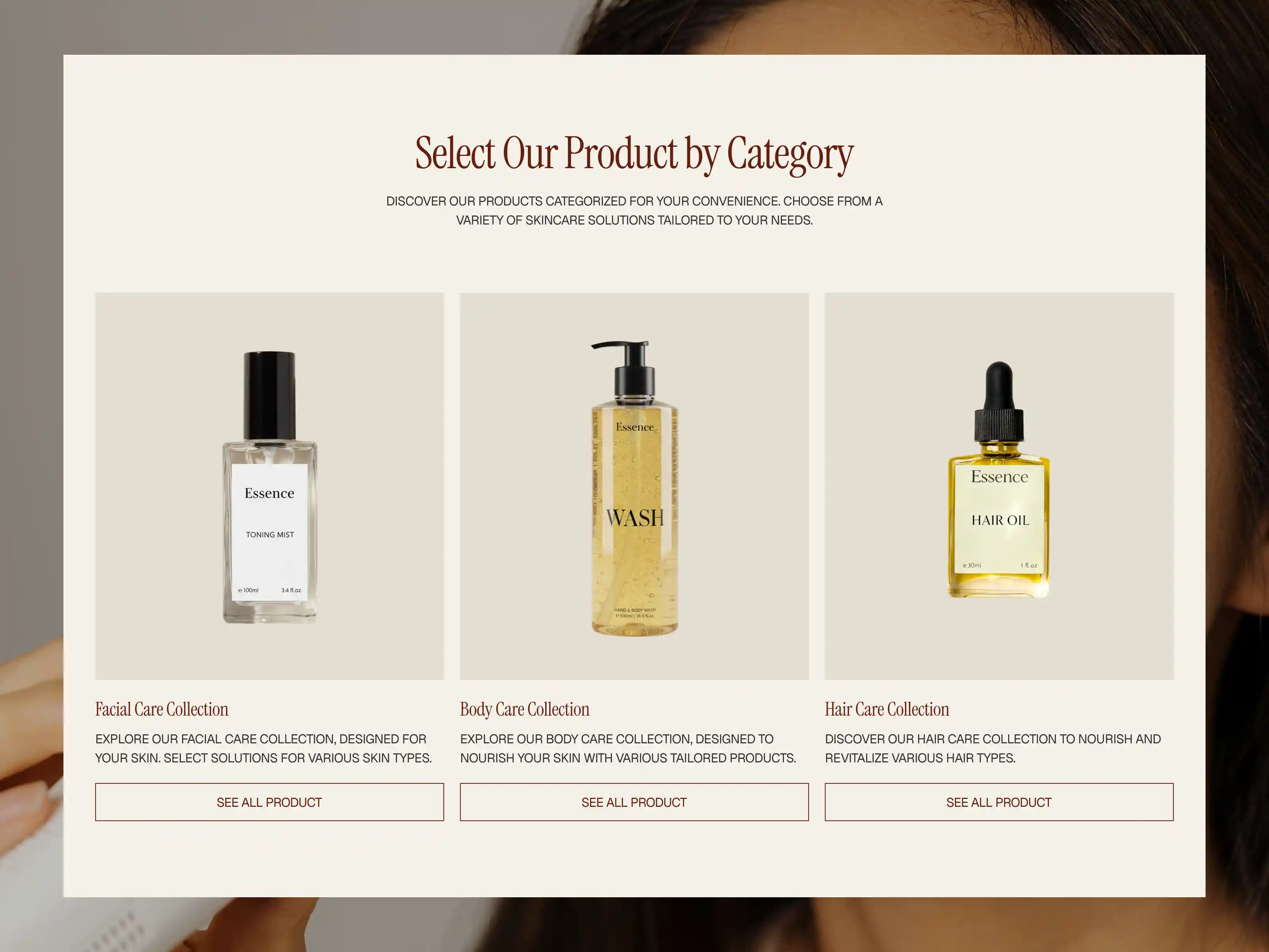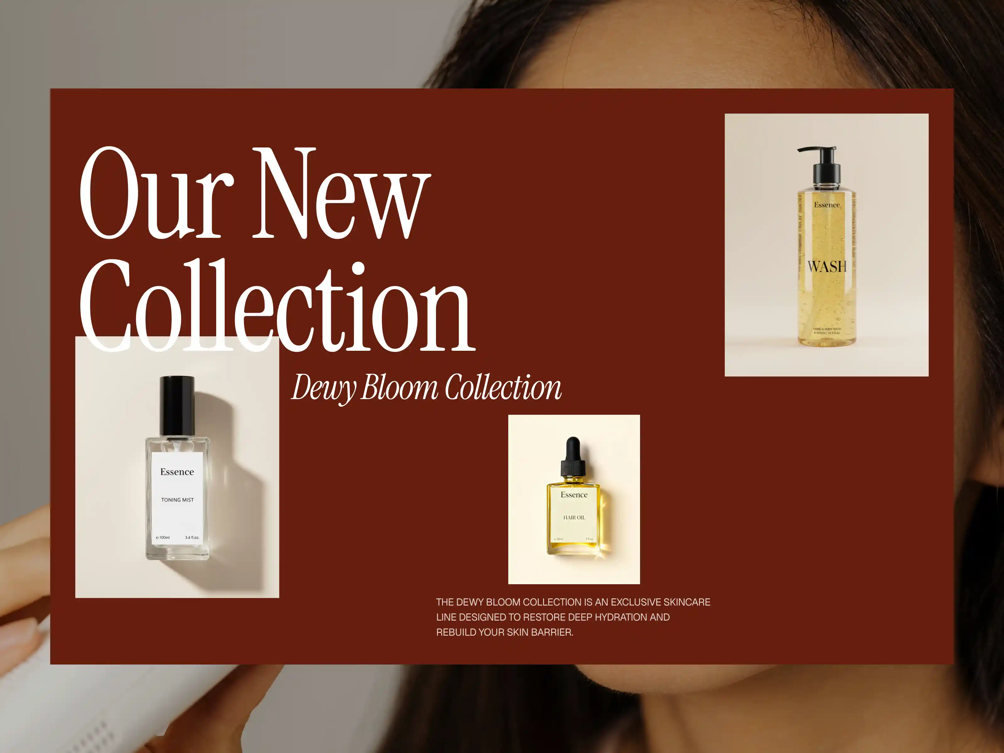 Essence is a skincare concept positioned as a calming, sensorial ritual that encourages slowing down and reconnecting with the skin.