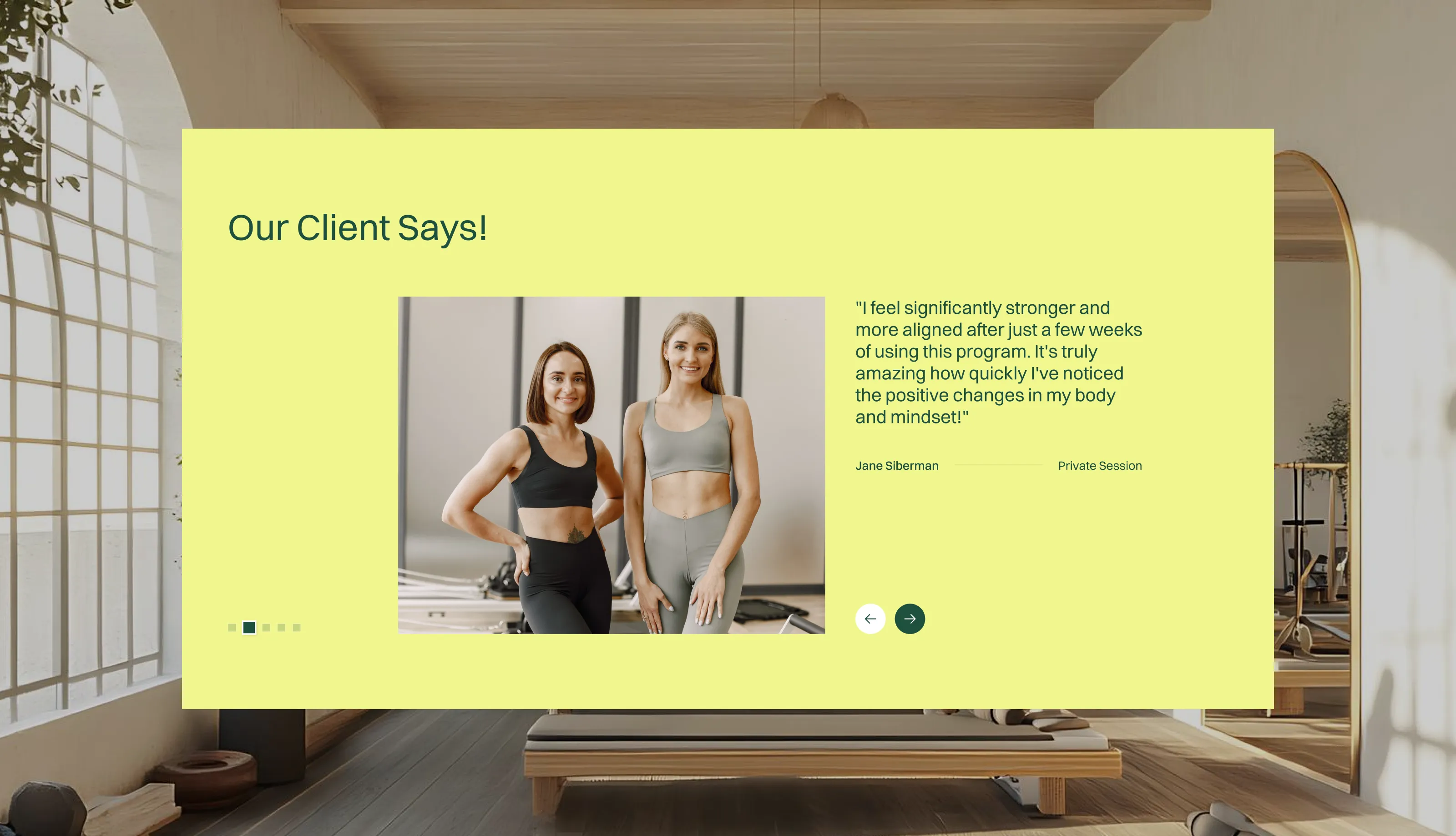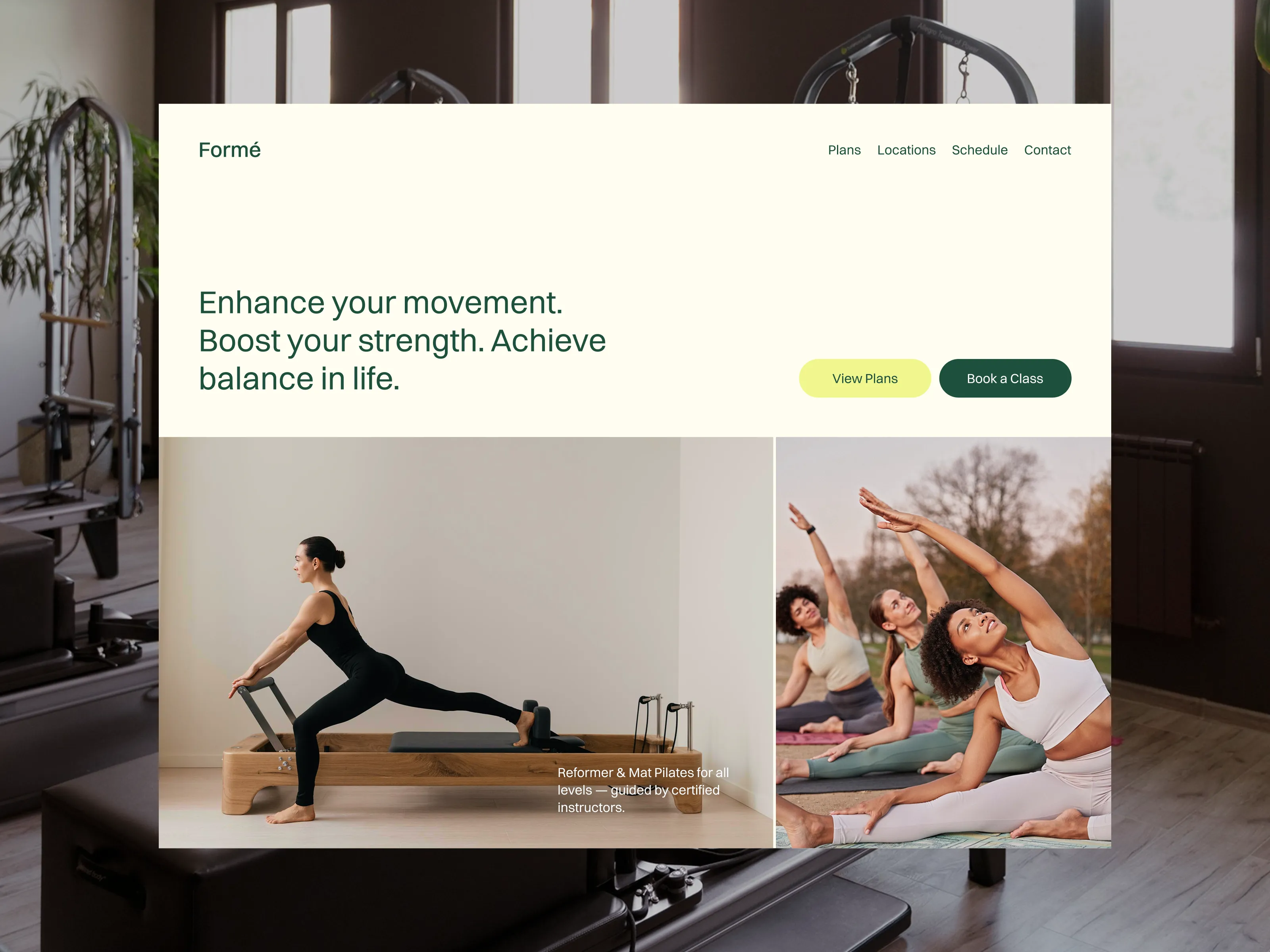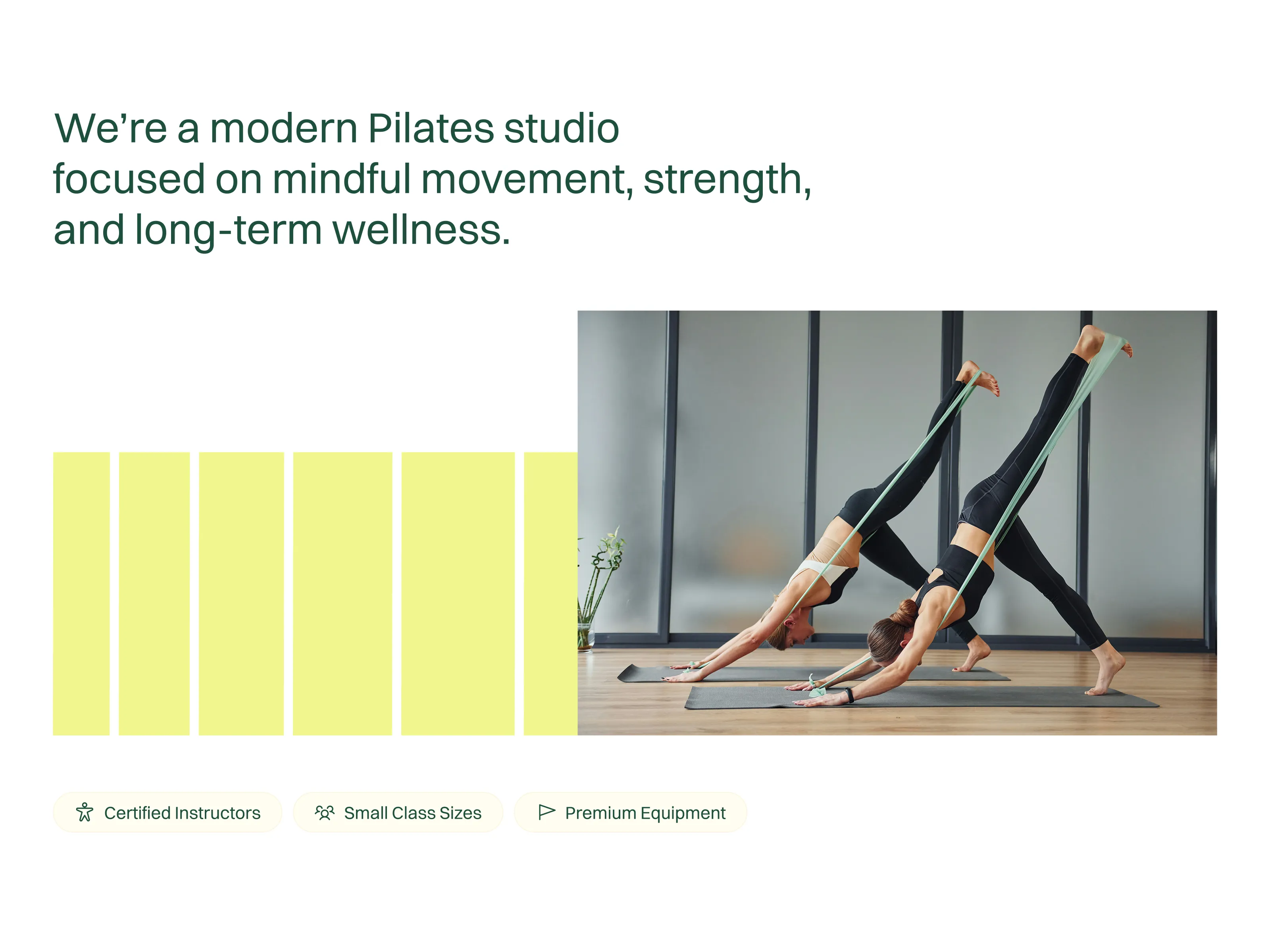 A website for a contemporary pilates studio, focused on mindful movement, strength, and long-term wellness.