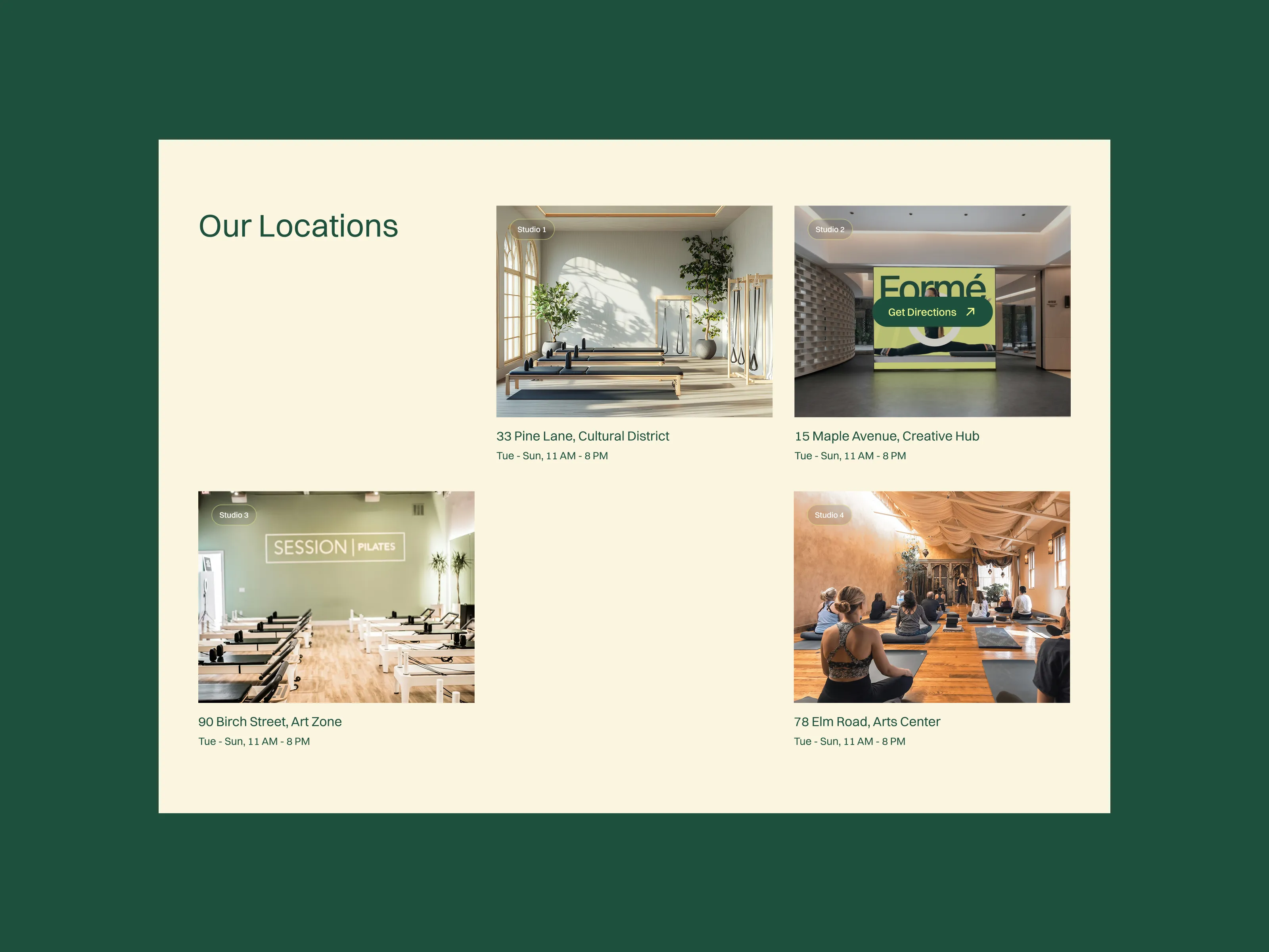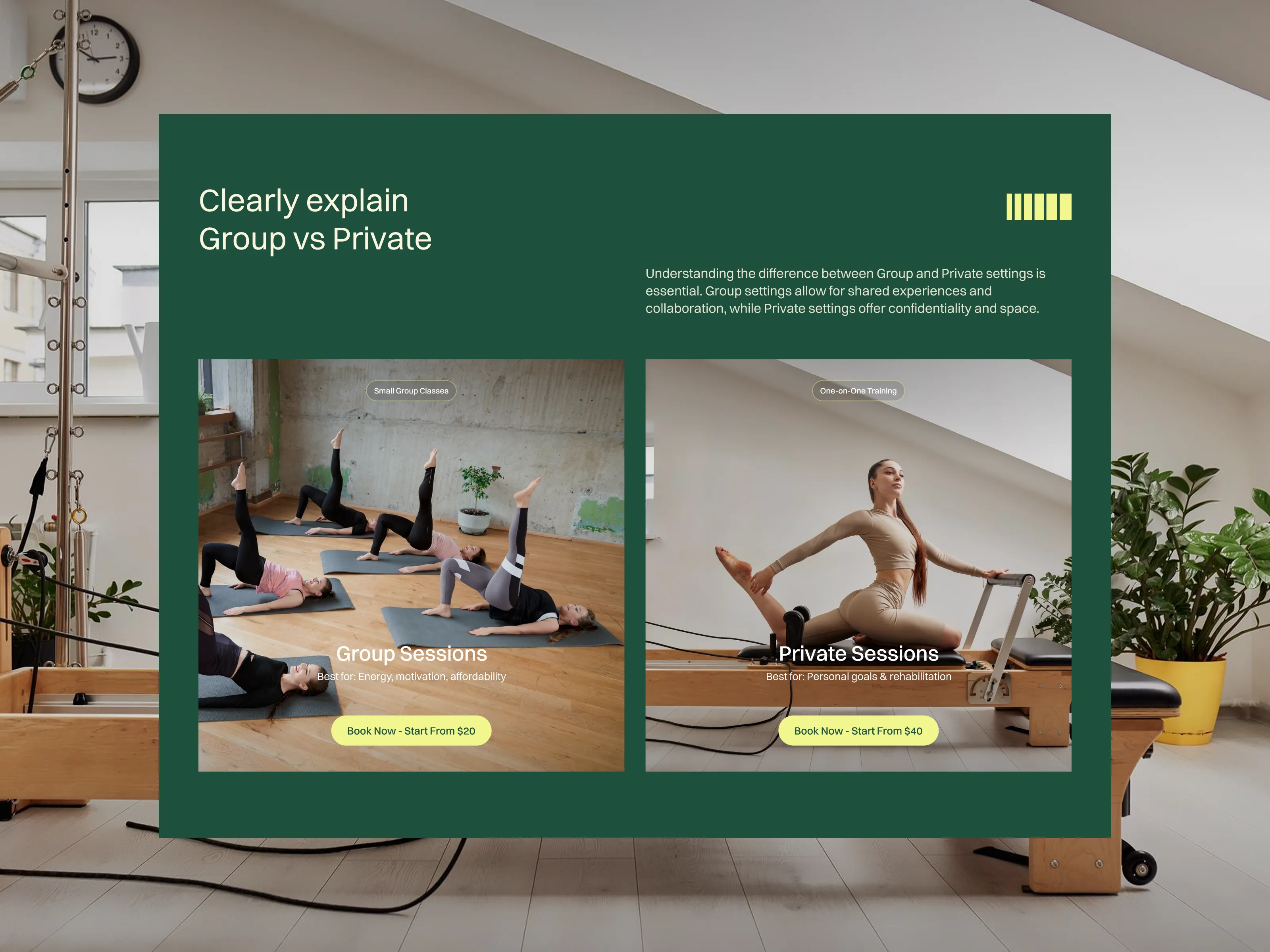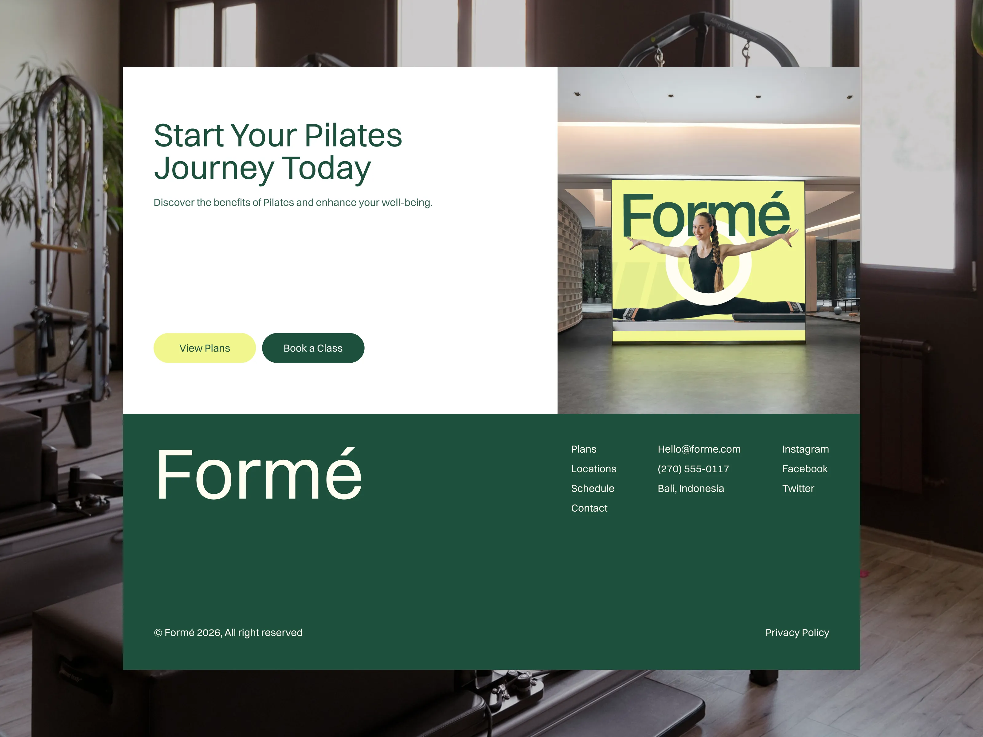 A website for a contemporary pilates studio, focused on mindful movement, strength, and long-term wellness.