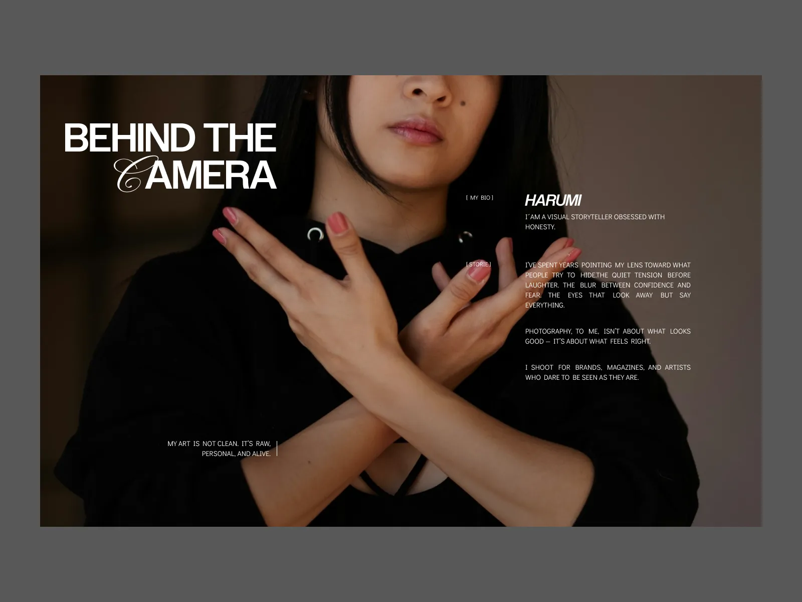 A refined editorial-style portfolio created for Narumi, a photographer whose work blends emotion, narrative depth, and visual elegance.