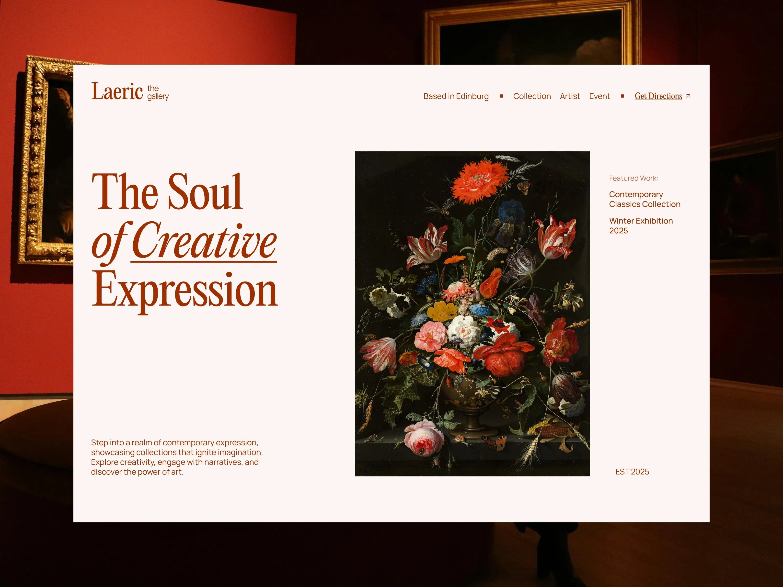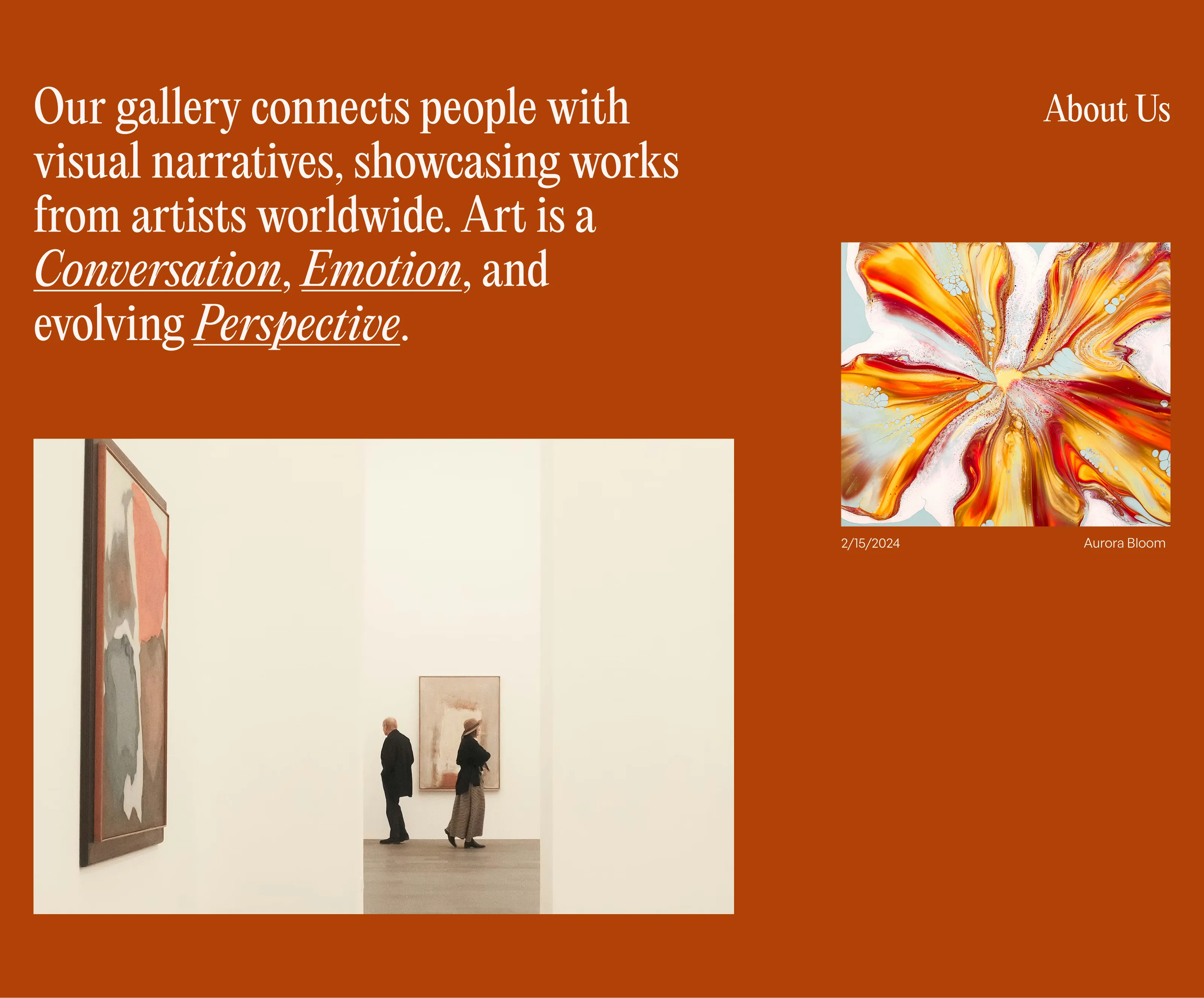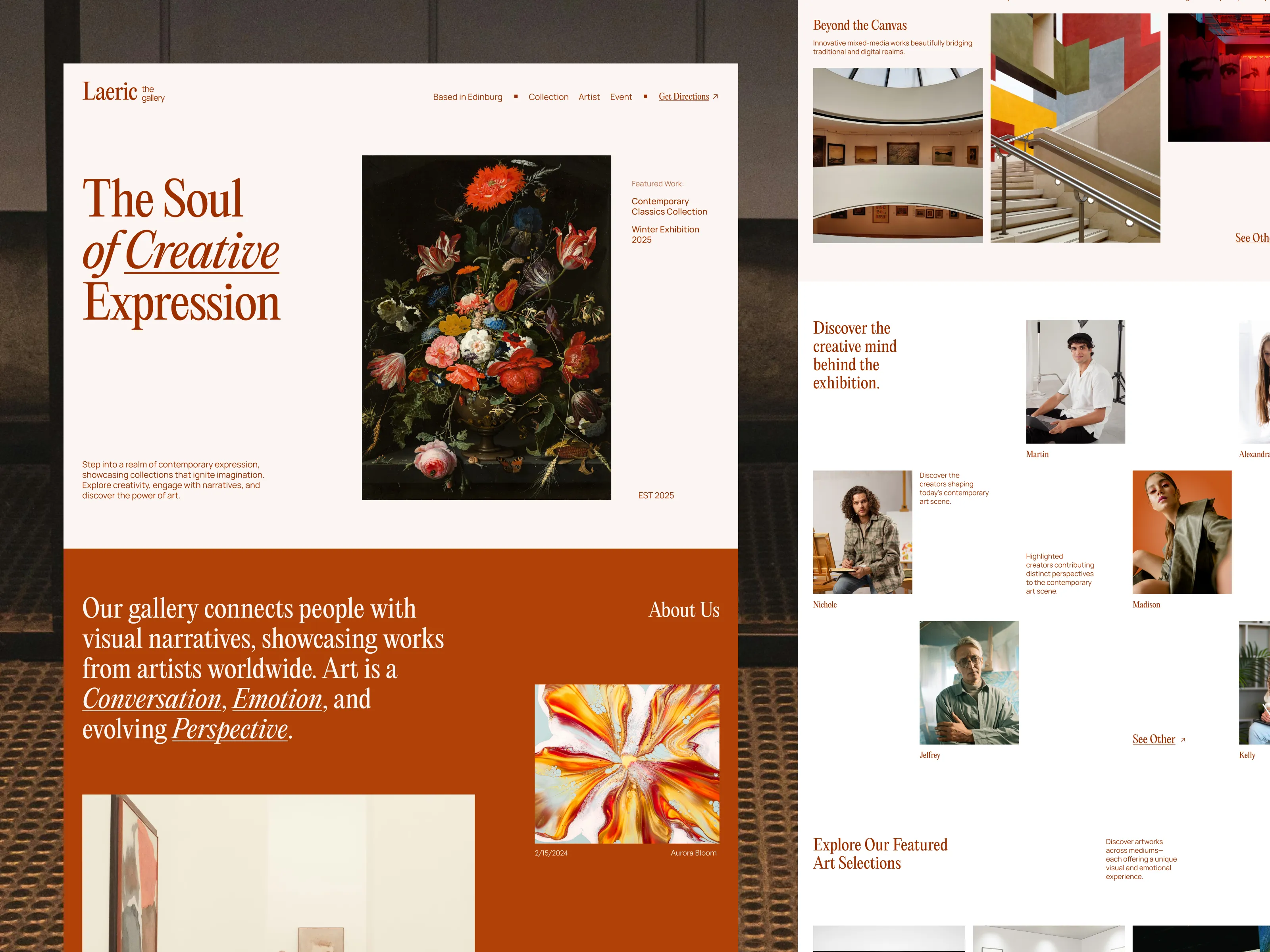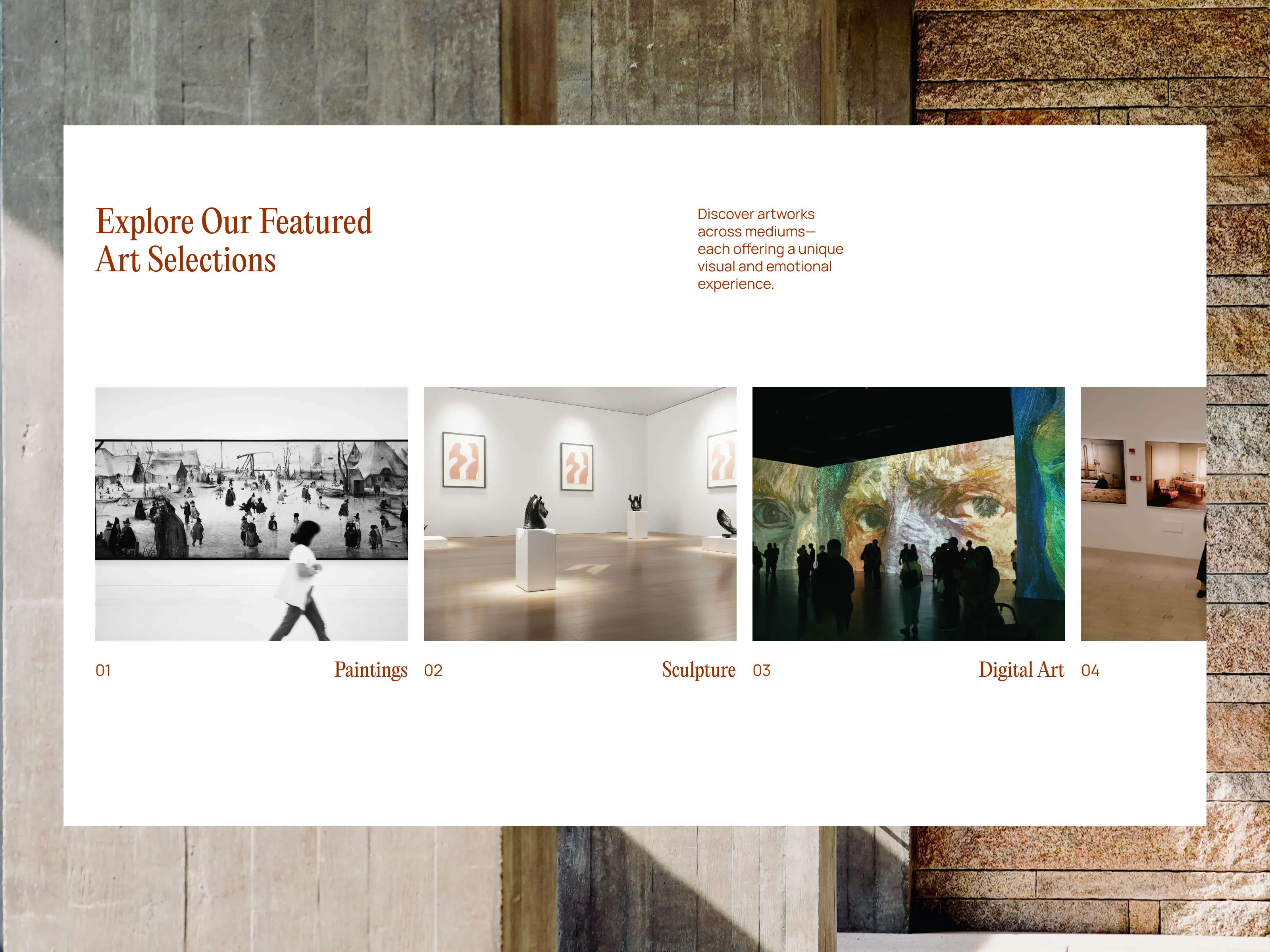 An art gallery landing page concept designed as a space where anyone can explore, express, and experience creativity — from painting and sculpture to digital art and contemporary installations.