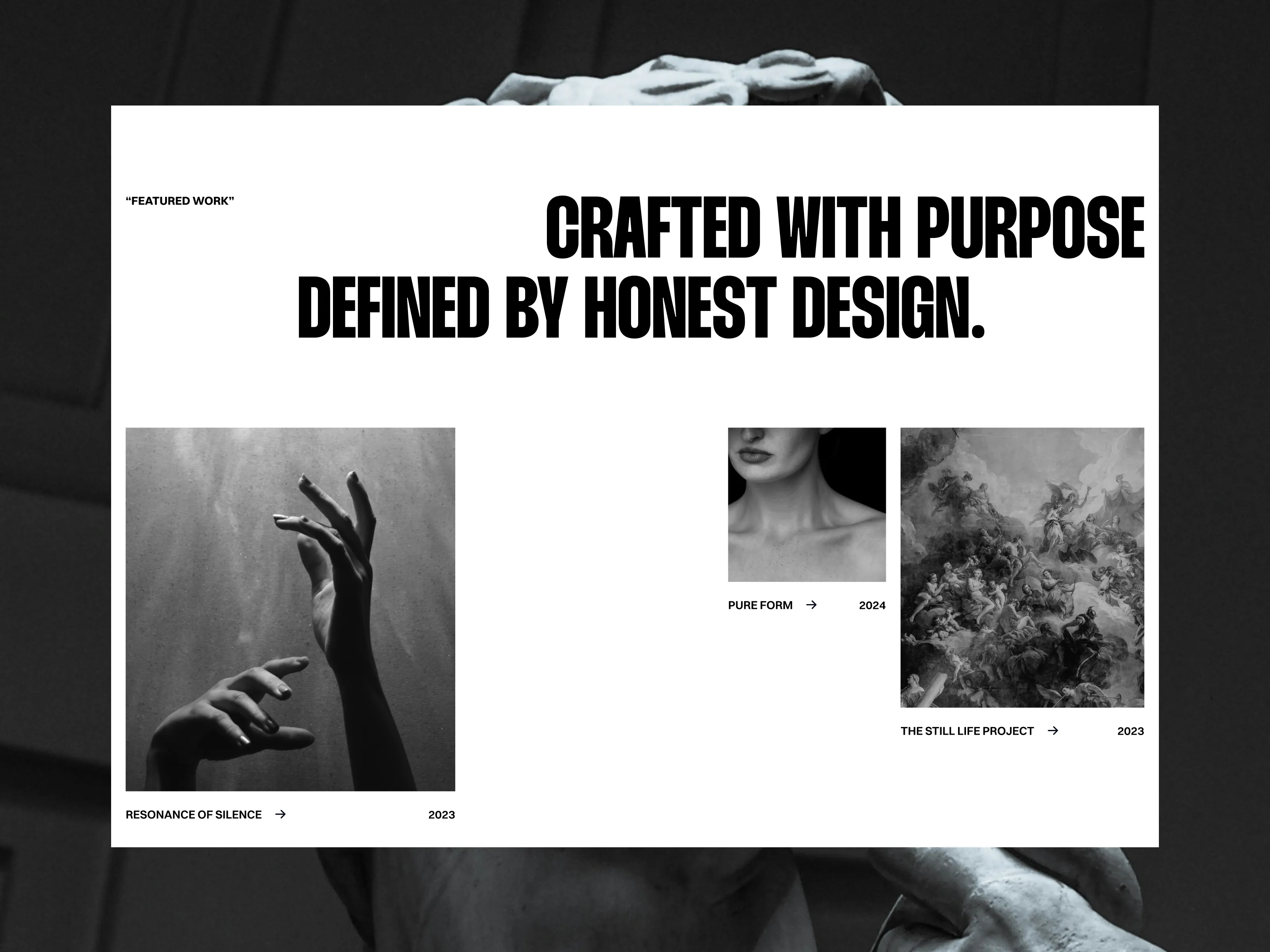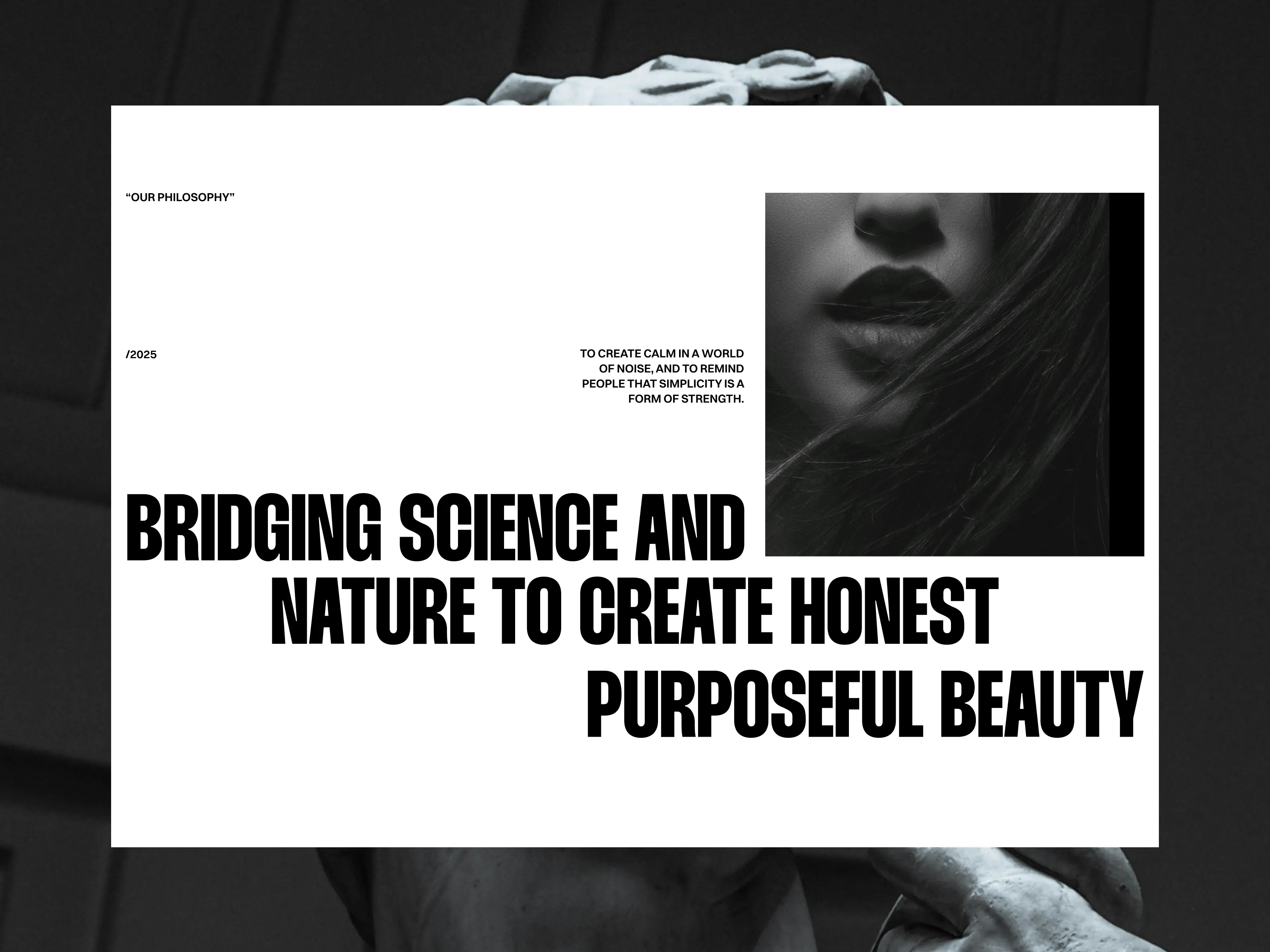 A quiet balance of typography, imagery, and negative space. Designed to feel like a curated print editorial — calm, intentional, and honest.