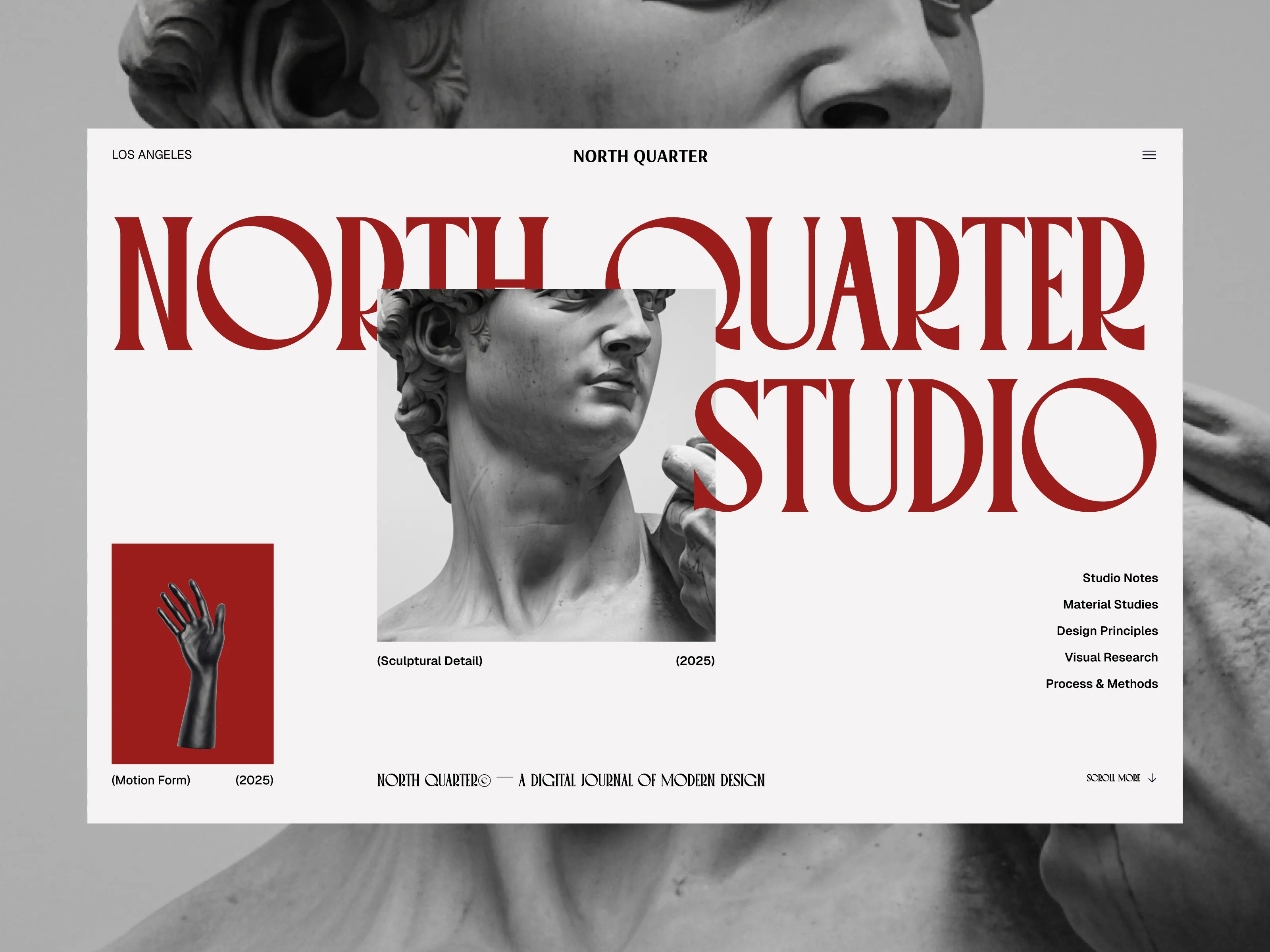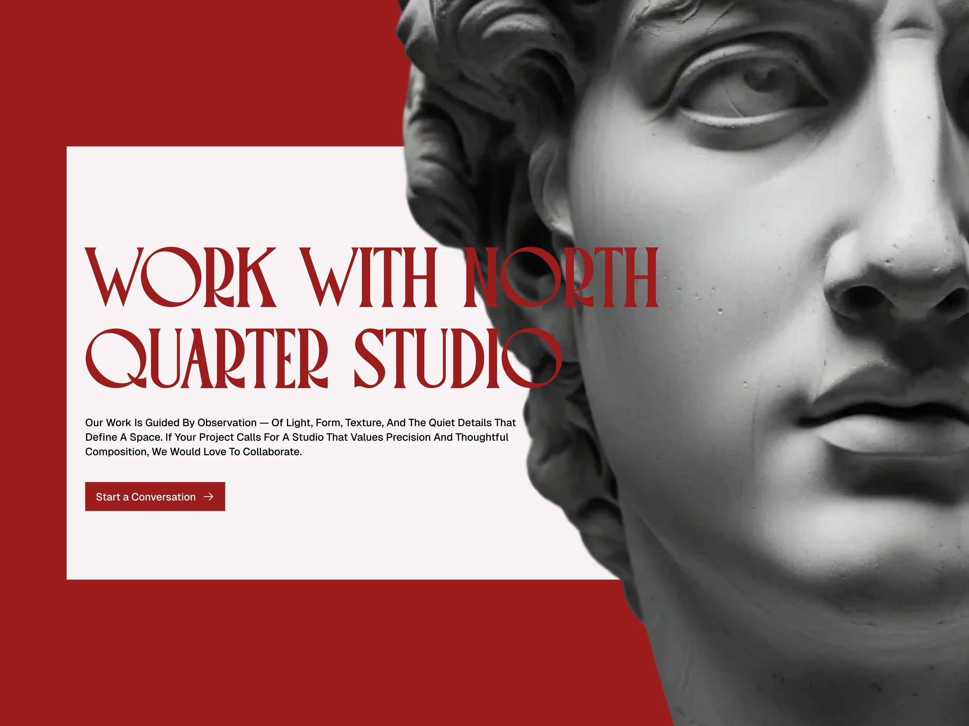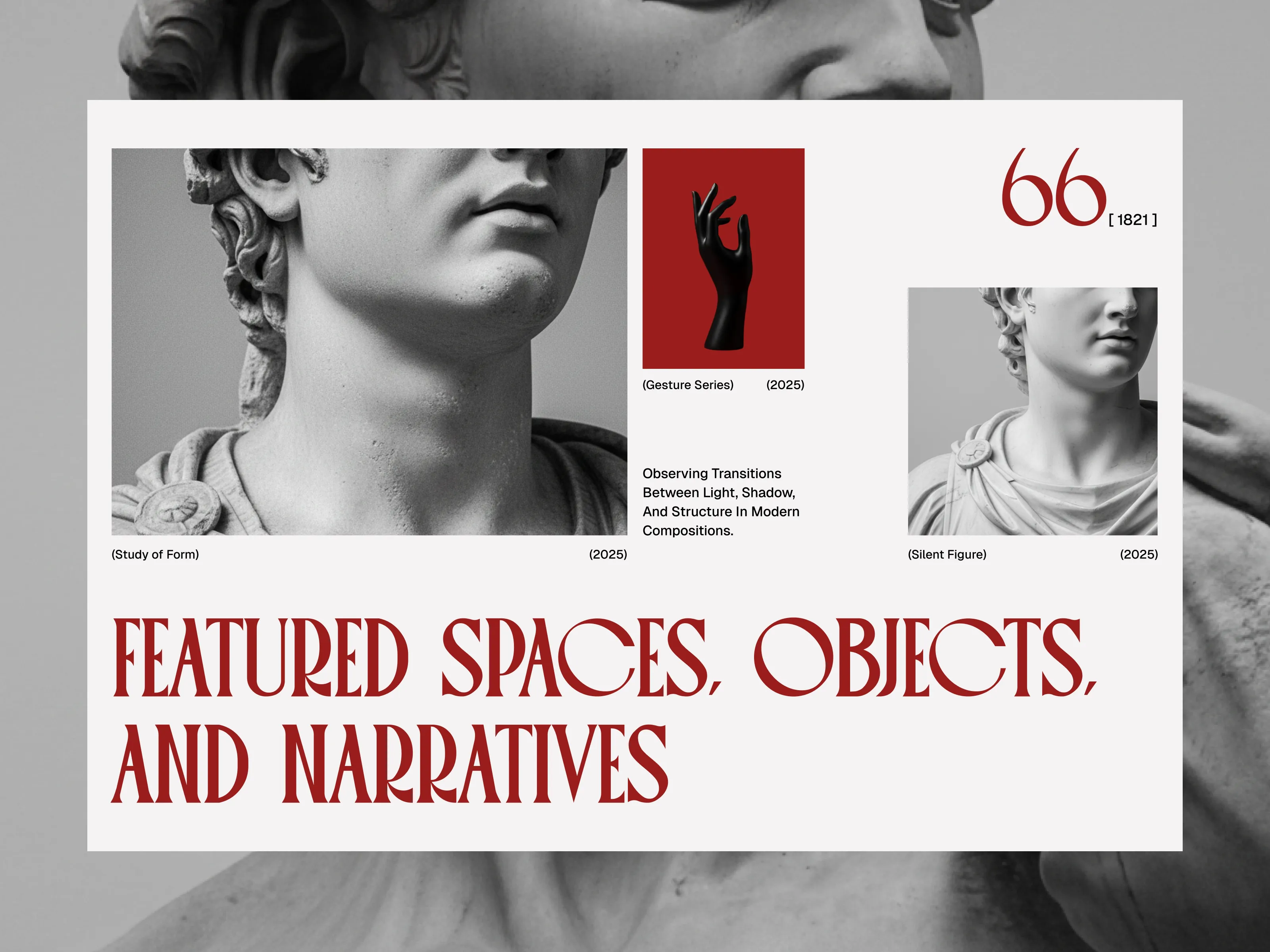 An editorial-driven art studio landing page exploration that blends classical sculpture, bold serif typography, and modern layout systems to create a calm, curated, and timeless digital presence.
