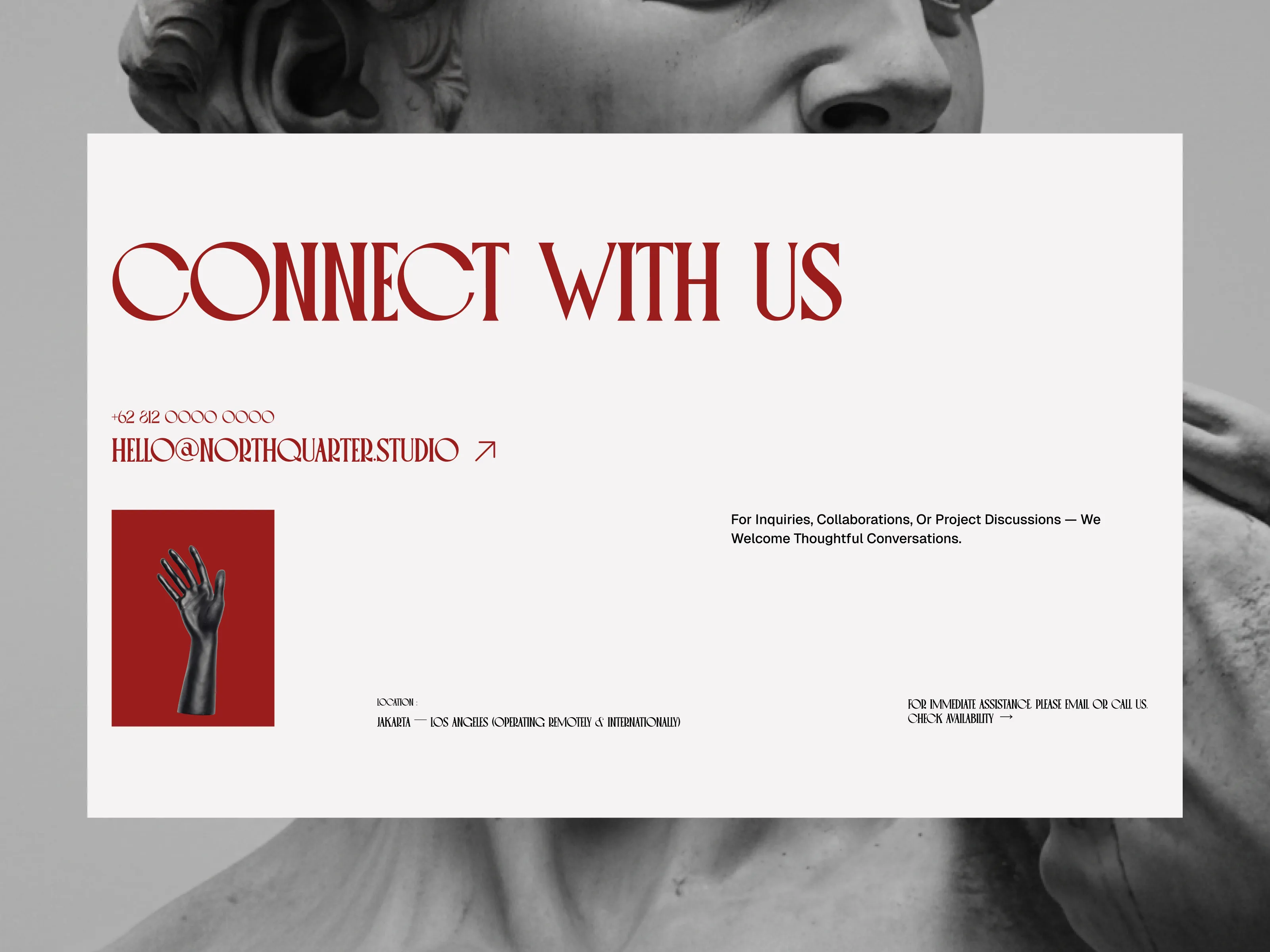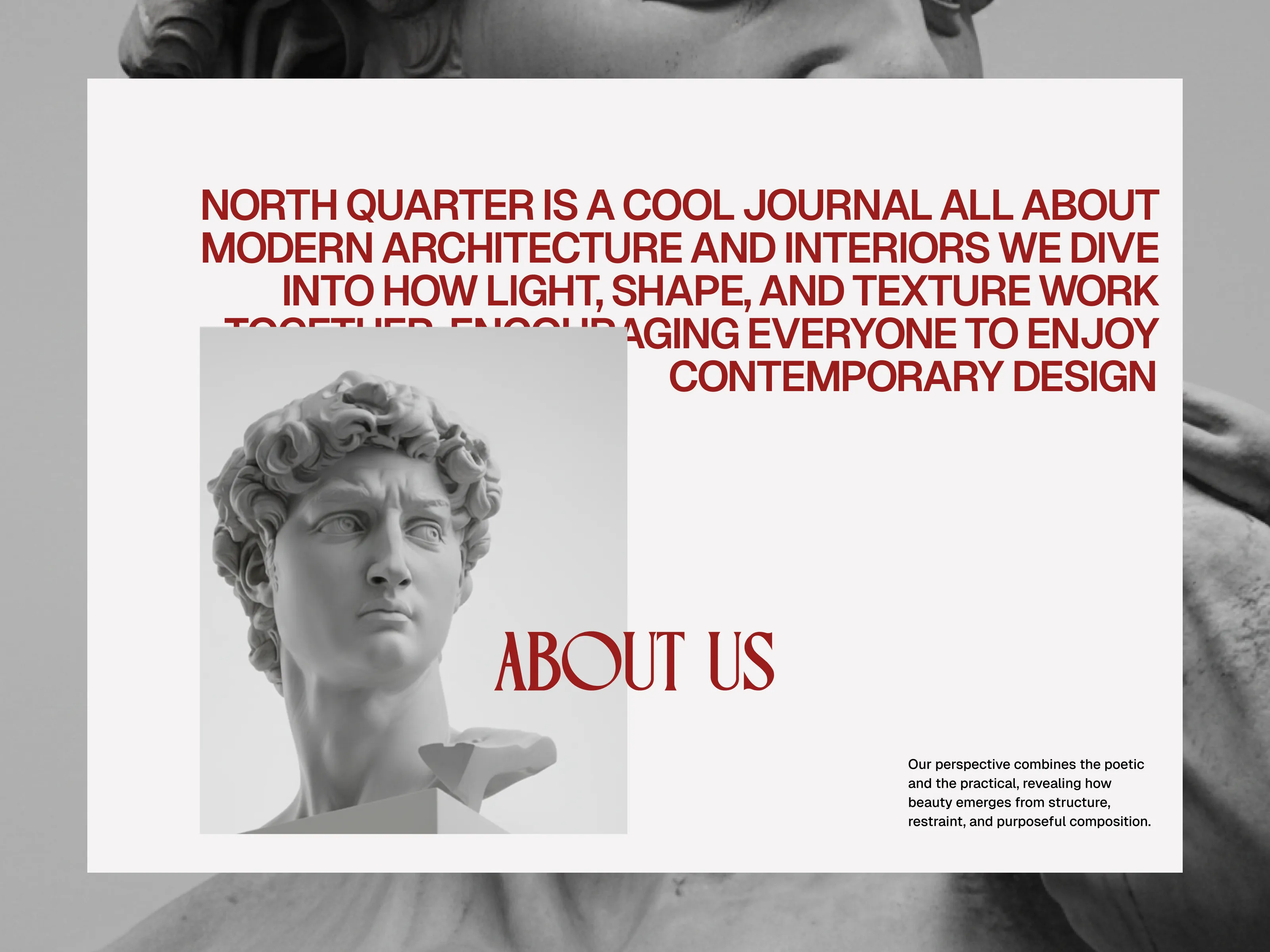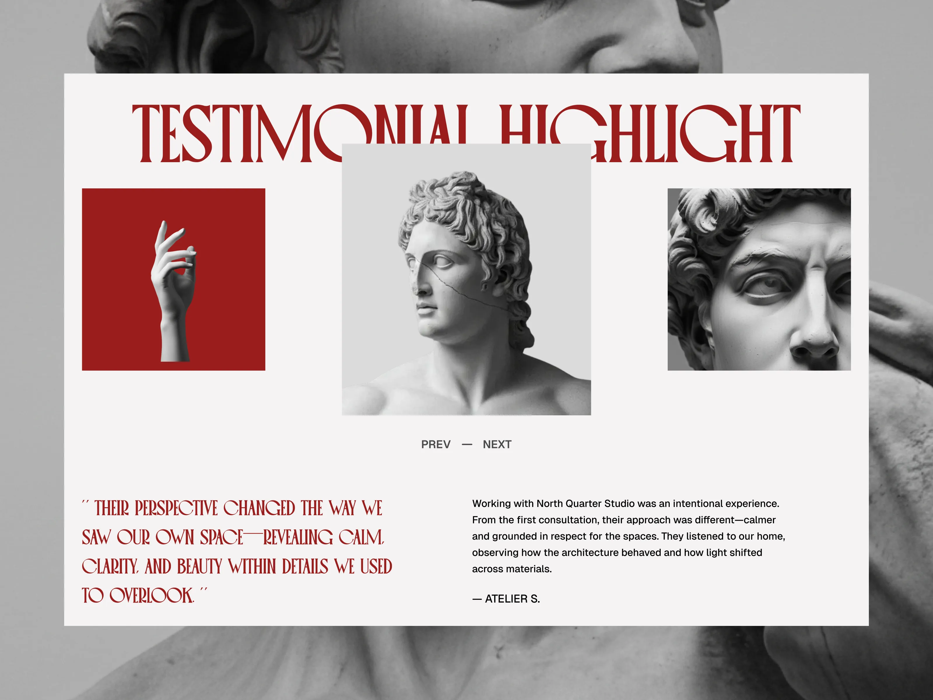 An editorial-driven art studio landing page exploration that blends classical sculpture, bold serif typography, and modern layout systems to create a calm, curated, and timeless digital presence.