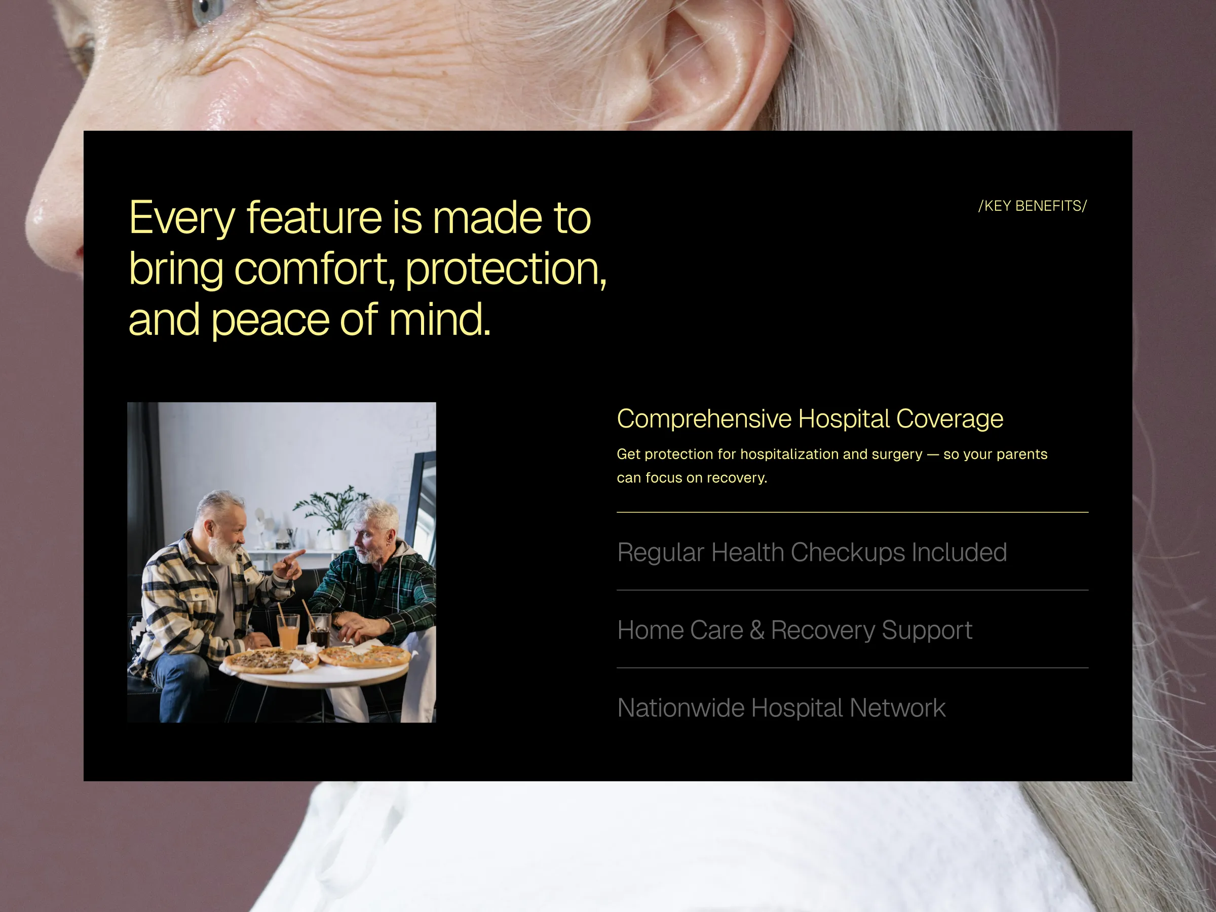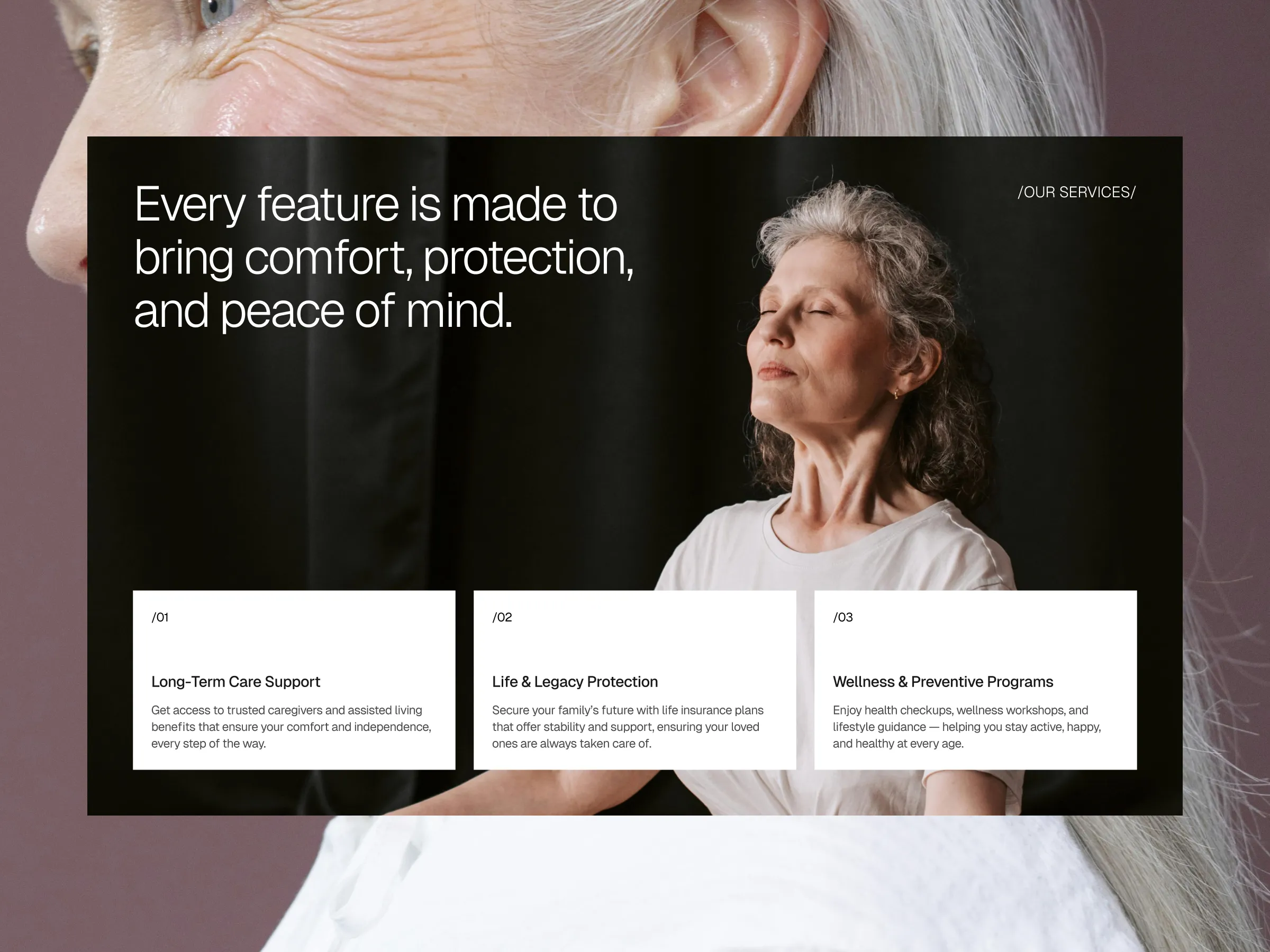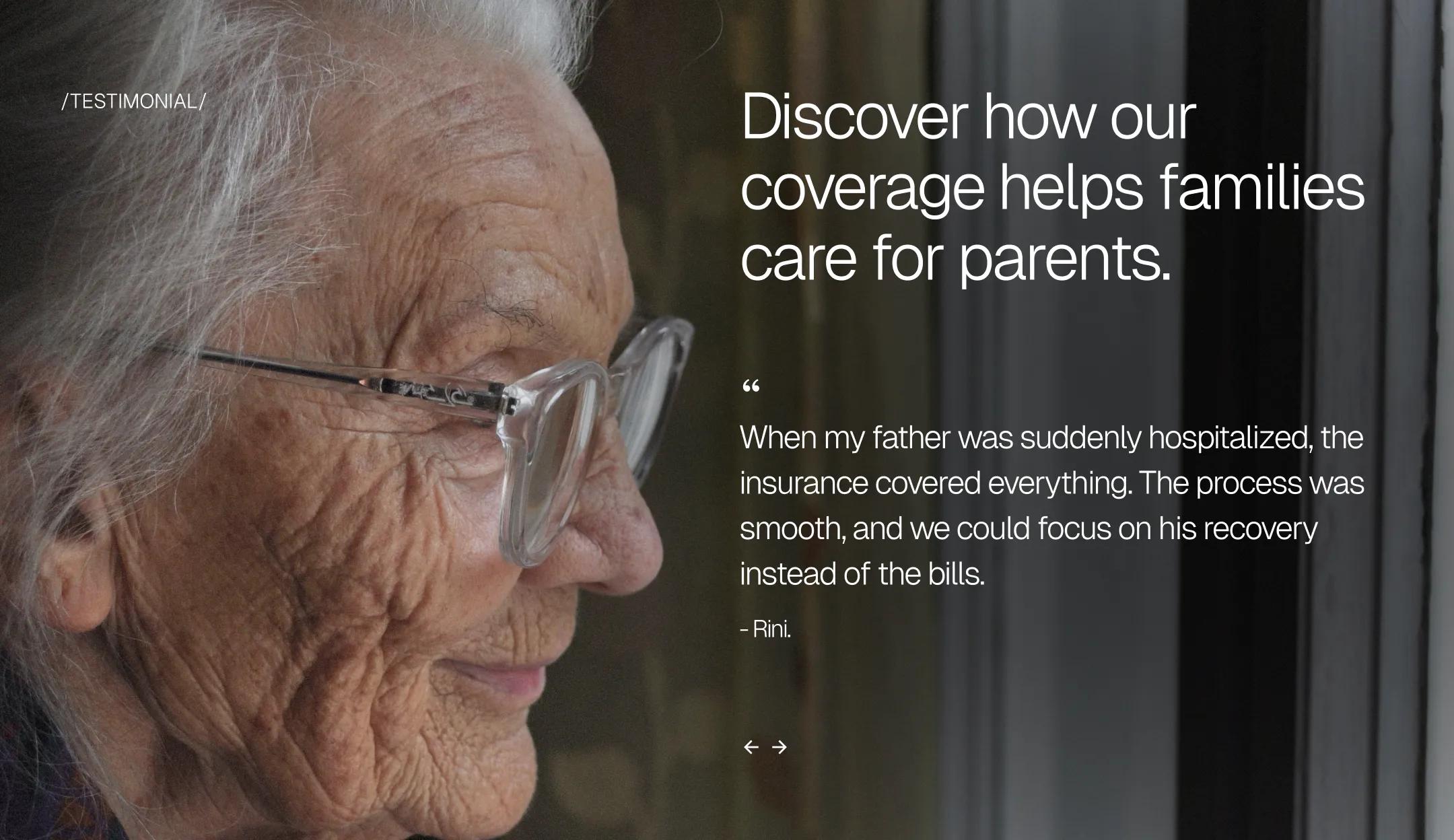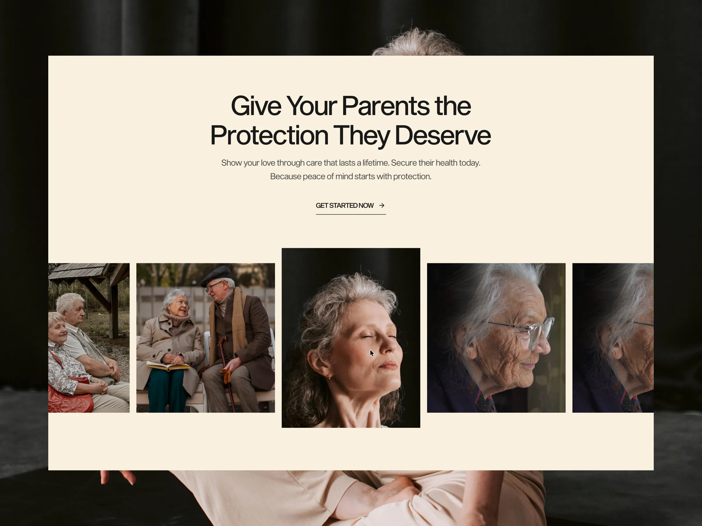A calm, trustworthy landing page concept focused on peace of mind, clarity, and care for aging parents—so families can worry less and love more.