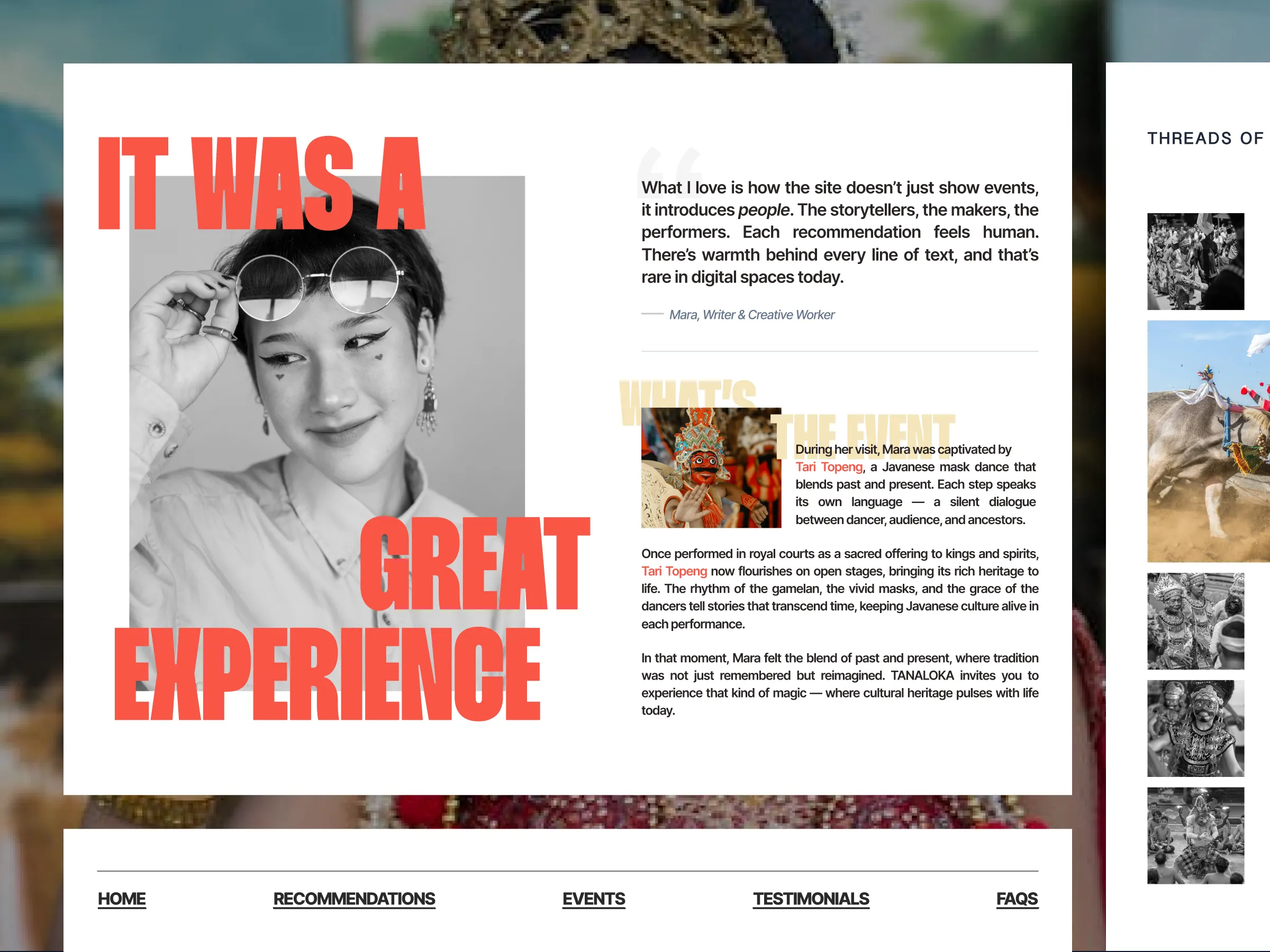 A bold editorial-style website that celebrates the colors, rhythm, and soul of Indonesia’s cultural events