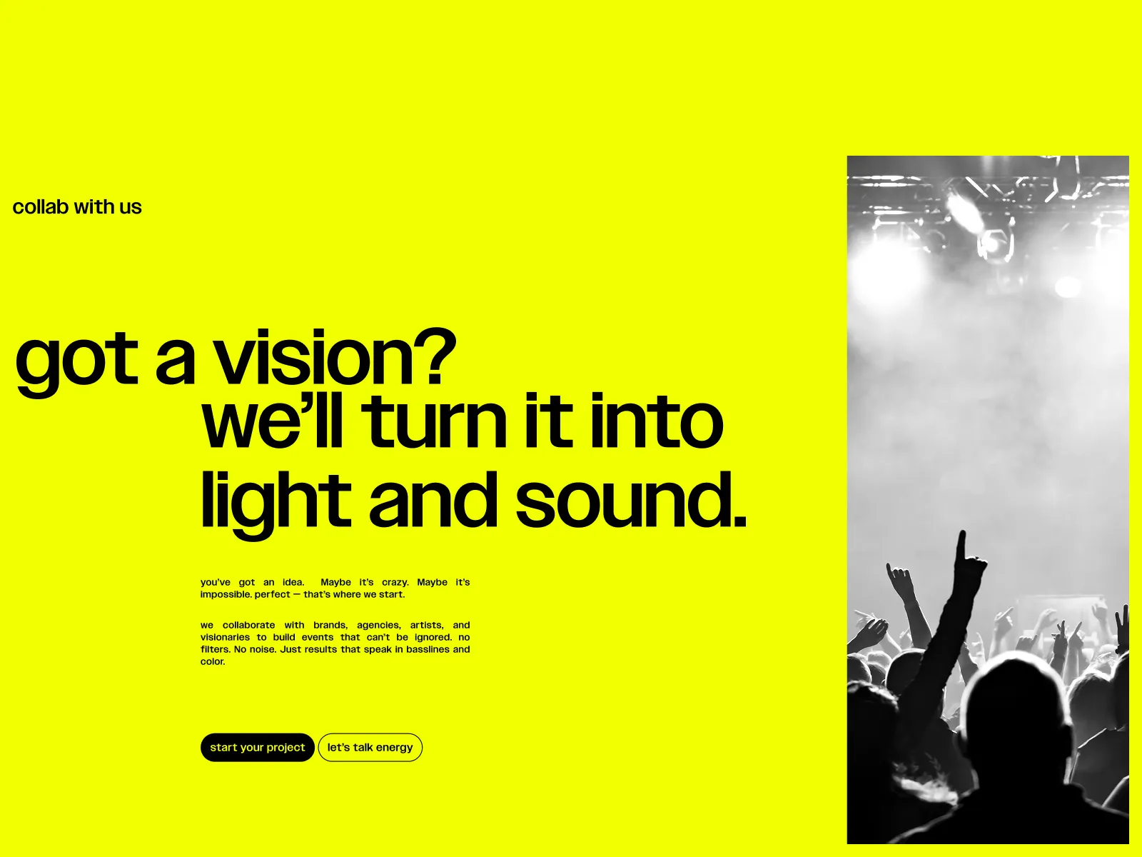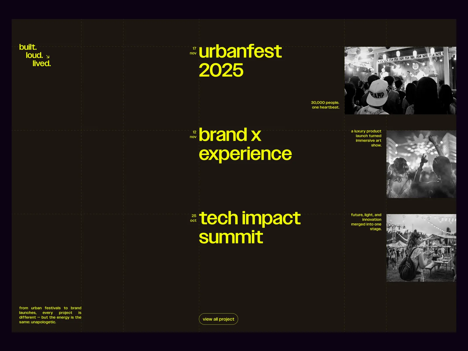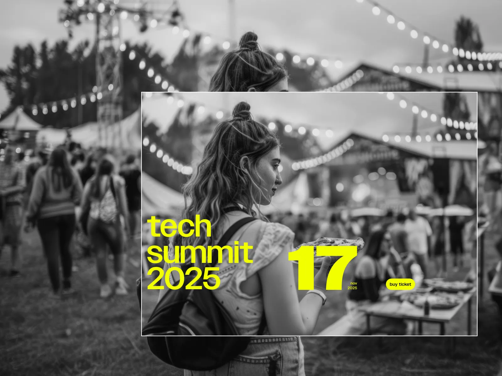 Featuring a dark atmospheric palette contrasted by sharp bright-yellow accents. The combination creates a visual identity that feels modern, confident, and energetic — just like a well-executed event.